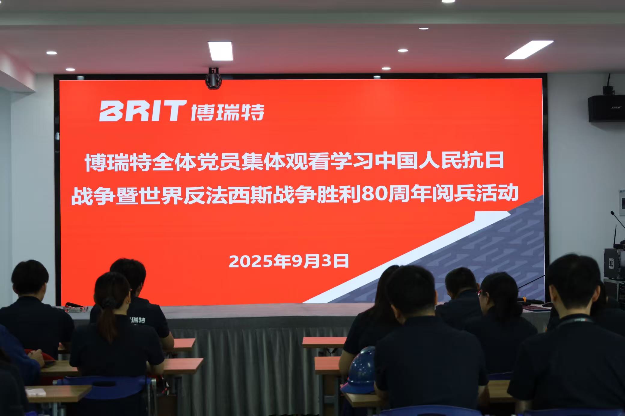 9月3日上午,博瑞特黨支部全體黨員及新入職員工集體觀看學習了中國人民抗日戰(zhàn)爭暨世界反法西斯戰(zhàn)爭勝利80周年大會活動,共同銘記歷史、緬懷先烈、珍愛和平、開創(chuàng)未來。博瑞特黨支部書記做動員講話。